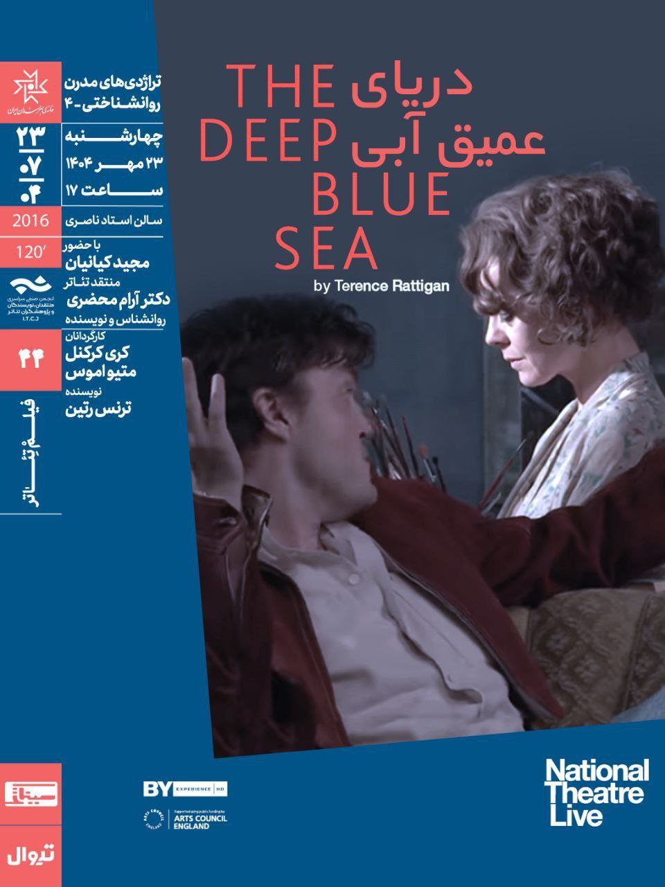 سینماروزان: چهل و چهارمین برنامه از سلسله جلسات نمایش فیلم‌تئاترهای شاخص با نمایش فیلم‌تئاتر «دریای عمیق آبی» به کارگردانی مشترک کری کرکنل و متیو اموس [از بسته تراژدی‌های مدرن روان‌شناختی] با همکاری مشترک انجمن منتقدان، نویسندگان و پژوهشگران خانه تئاتر و سینماتک خانه هنرمندان ایران برگزار می‌شود.