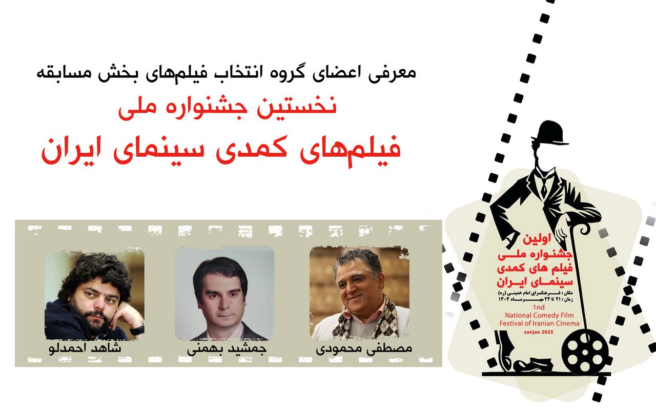 نخستین جشنواره ملی فیلم های کمدی سینمای ایران، ” شاهد احمدلو” بازیگر، نویسنده، مدرس و کارگردان سینما و تلویزیون وسازنده بیش از 30 اثر سینمایی، تلویزیونی، سریال و کوتاه به همراه” جمشید بهمنی” کارگردان بازیگردان فیلمنامه نویس و سازنده بیش از 20 اثر بلند سینمایی، کوتاه، مستند و مجموعه تلویزیونی و “مصطفی محمودی” منتقد و پژوهشگر سینما استاد دانشگاه و مدیر فرهنگی به عنوان اعضای گروه انتخاب فیلم های بخش مسابقه جشنواره از سوی ساسان قجر دبیر این رویداد فرهنگی هنری معرفی شدند.