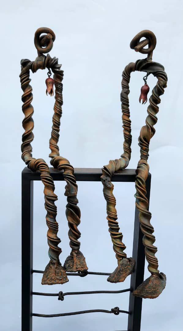 در استیمنت این نمایشگاه آمده است؛ «در خویش مانده» دعوتیست به مکث. به نگریستن به درون. بهایستادن در برابر یک پیکره و دیدن بازتابی از خود. نه برای پاسخ، بلکه برای همدلی با پرسشی که در هر گره، ساکت و سربهزیر، نفس میکشد. این مجموعه سرگذشت بیصدا اما سنگین انسانهاییست که سالهاست میان خود و جهان، دیواری بیدست کشیدهاند. فیگورهایی که انزوا را نه در هیاهوی واژگان، بلکه در سکوت فرم مجسم کردهاند. بر فراز این بدنهای خاموش، گرههایی از فلز نشسته است؛ سرهایی بیچهره، اما لبریز از تنش، پرسش و ناتمامماندگی. این گرهها بیانیهای بصری از پیچیدگی ذهن و فروبستگی عاطفه است. اگر در این سکوت بیدست، صدایی شنیدید؛ اگر در آن گره فلزی، طرحی از دل خویش دیدید، بدانید که شما تنها نیستید.